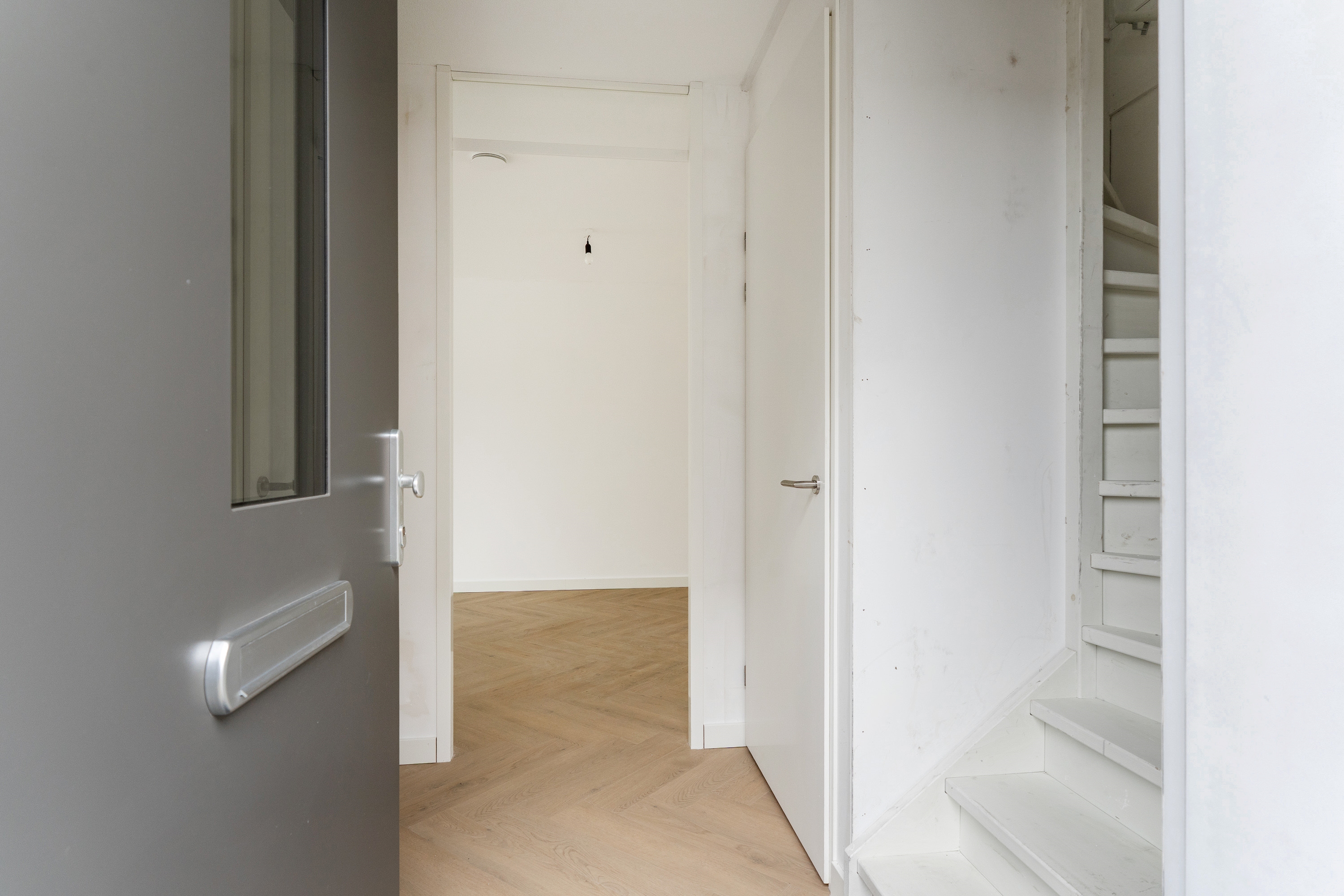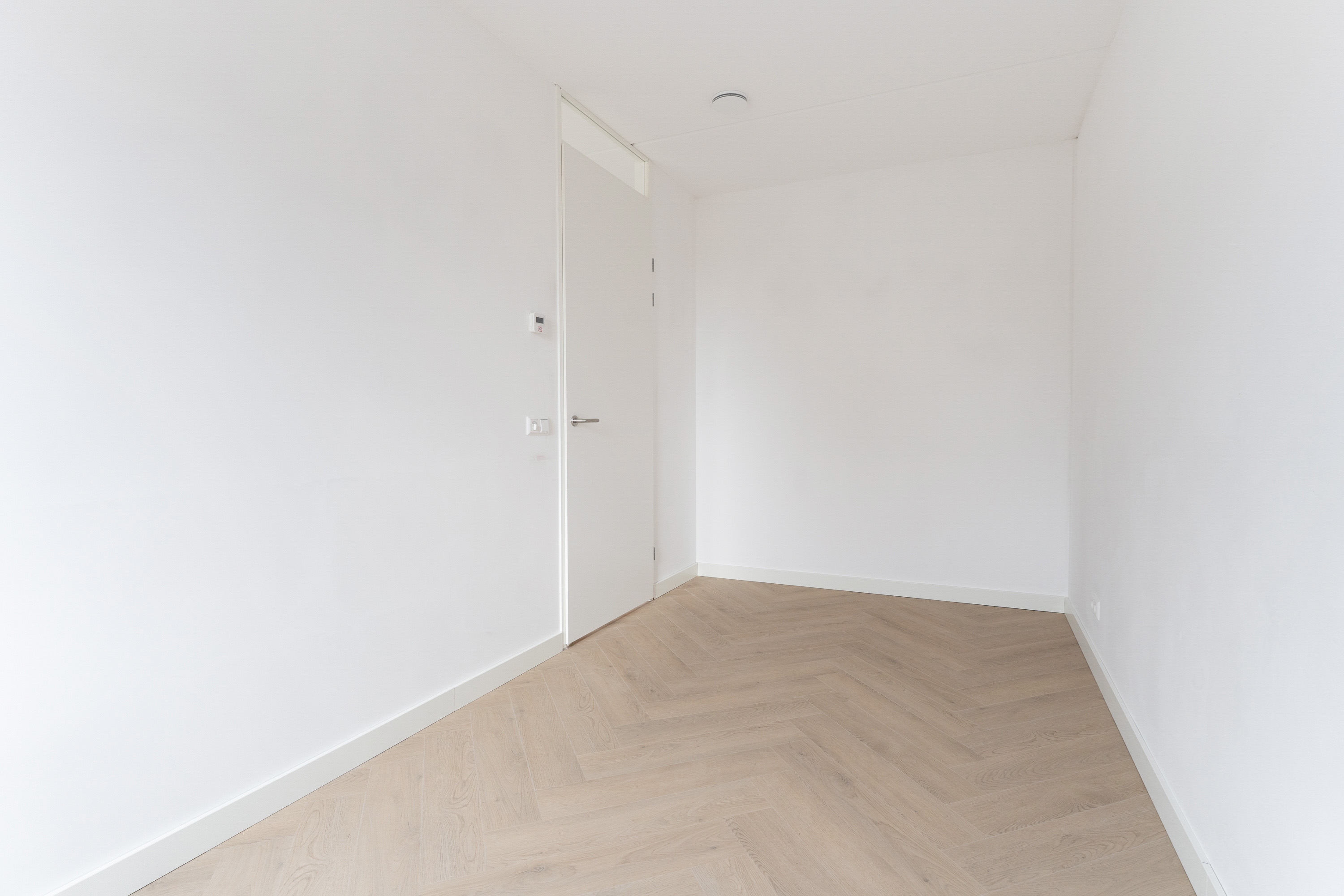 De begane grond is afgewerkt met vloerverwarming en een lichtkleurige PVC visgraatvloer, wat zorgt voor een stijlvolle, moderne en hoogwaardige uitstraling.