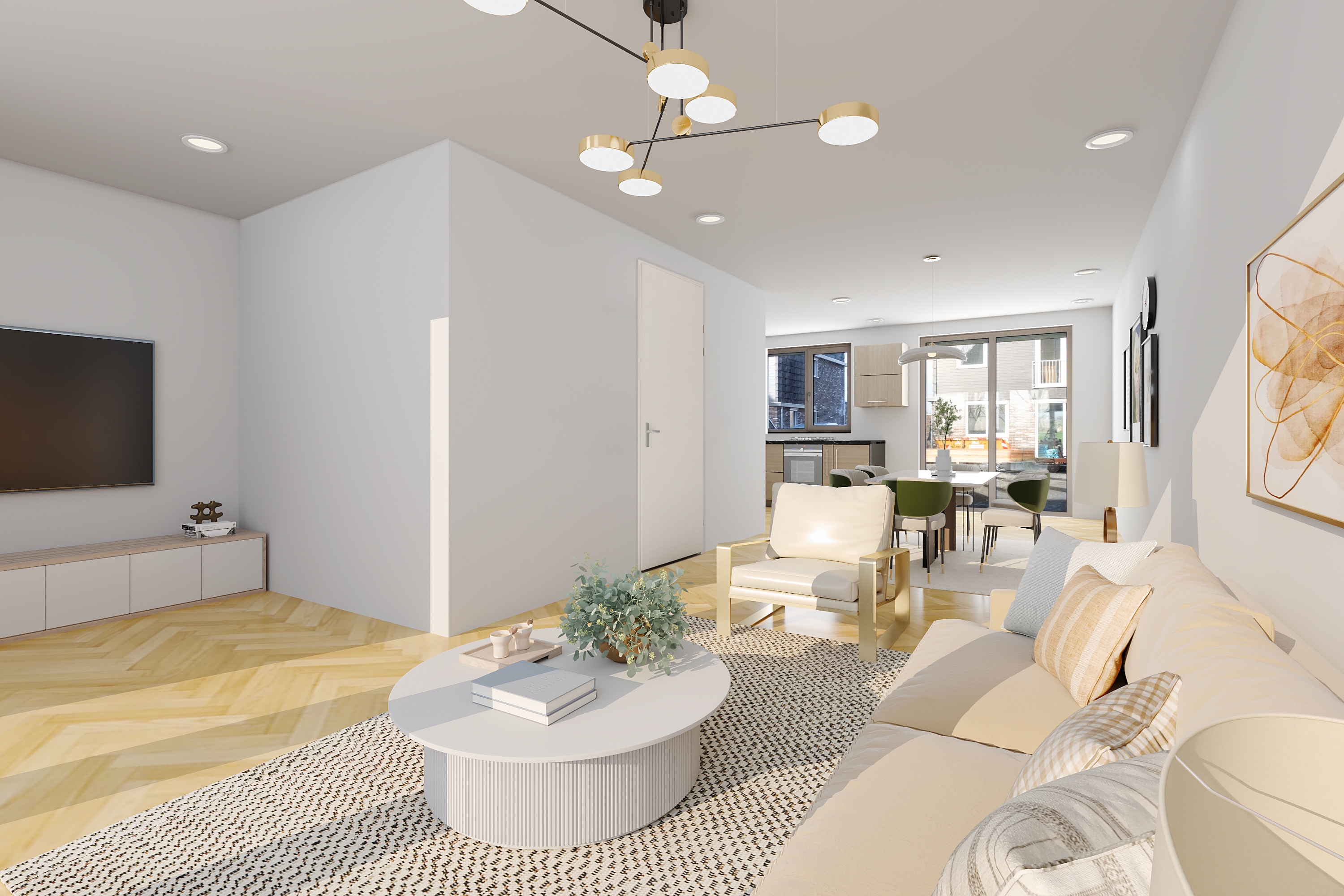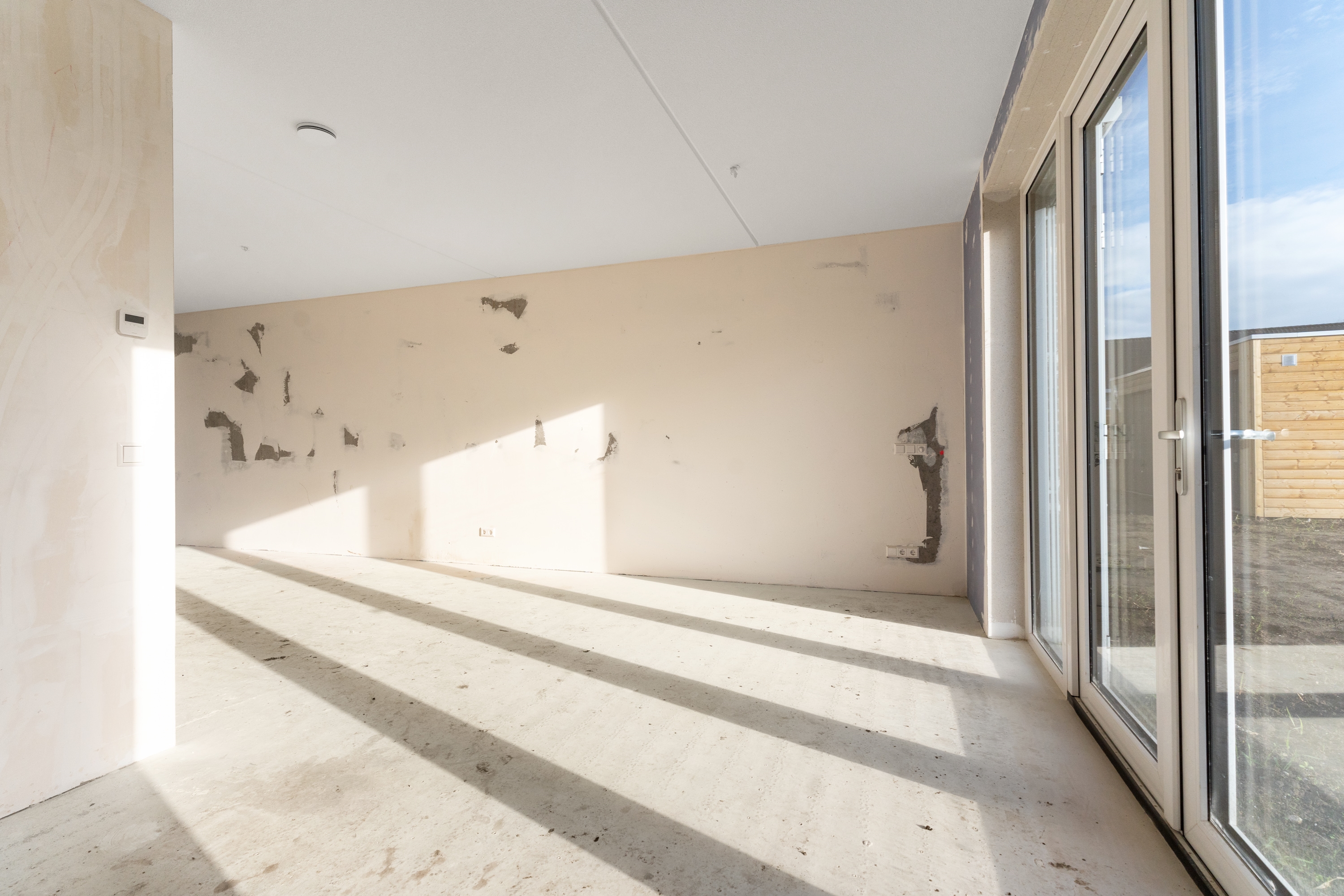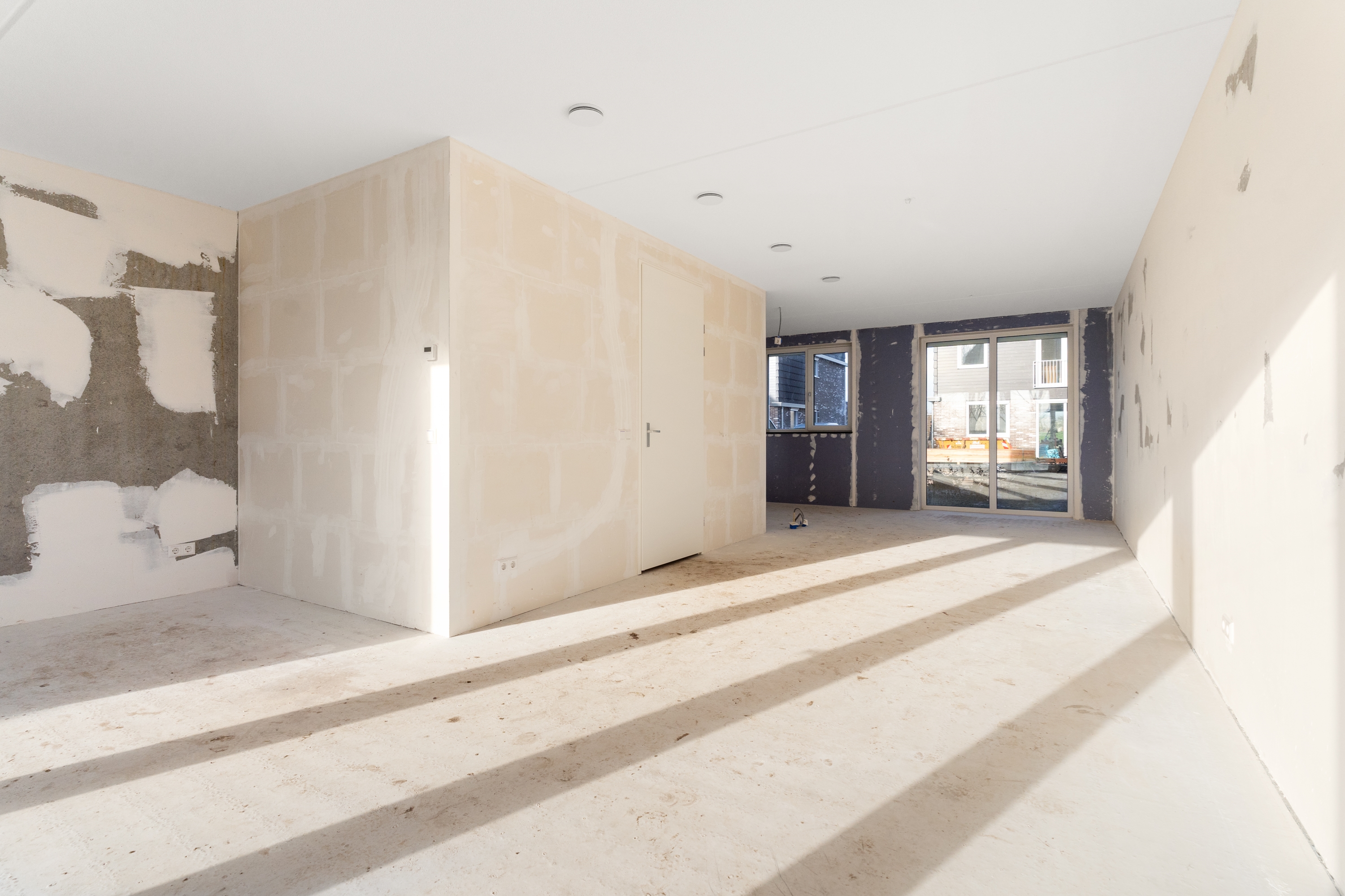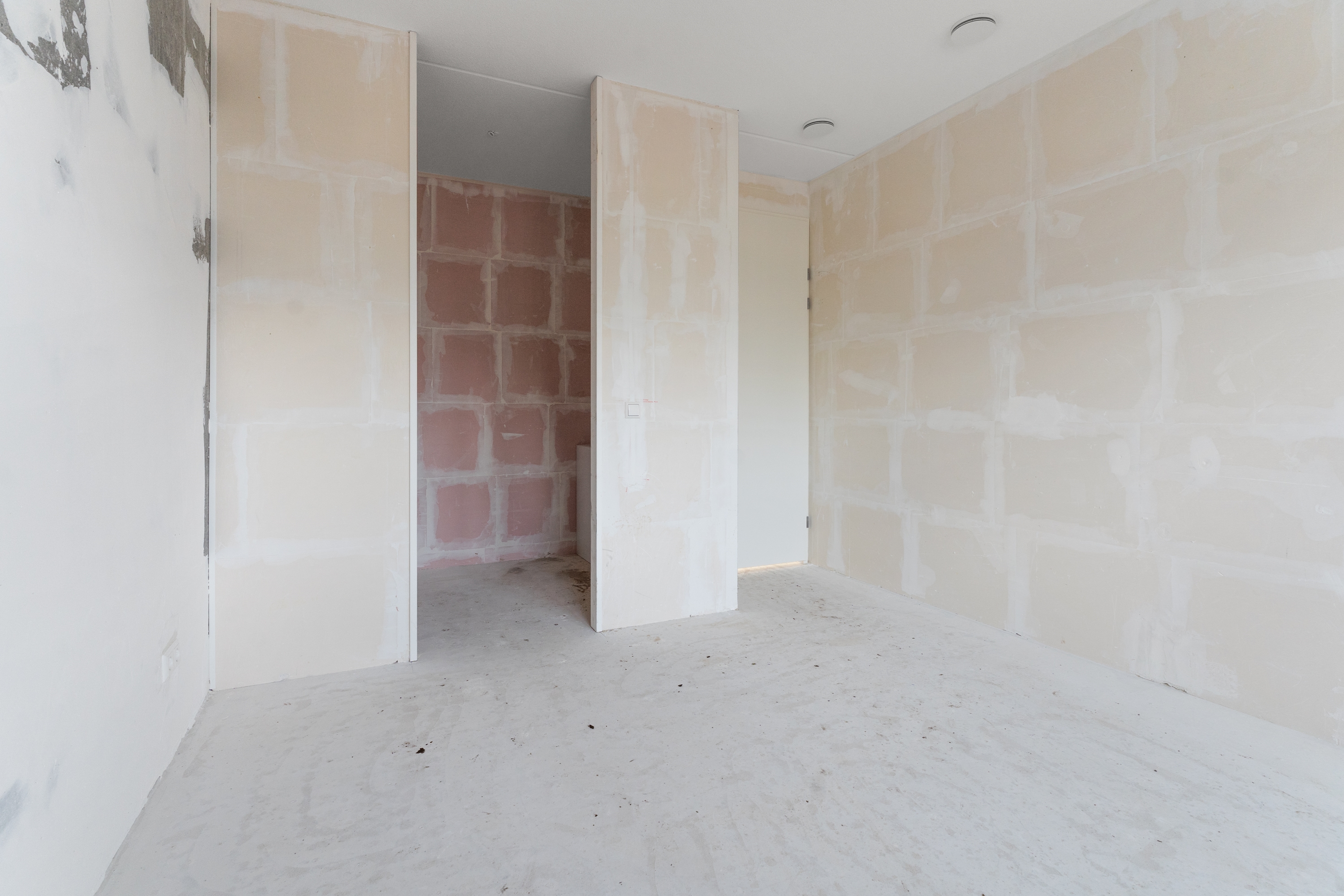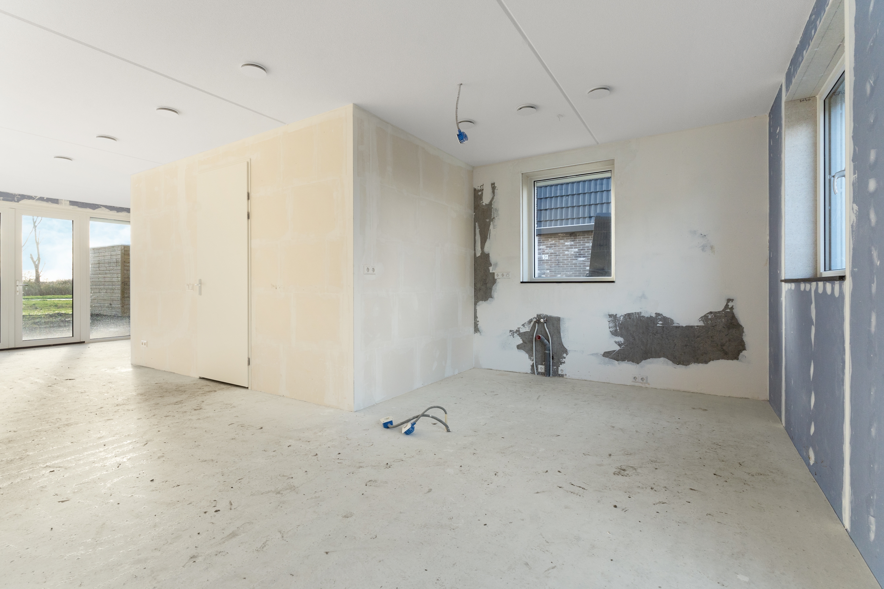 De keuken is aan de voorzijde, waarbij leidingwerk, elektra en andere voorzieningen al zijn voorbereid voor het plaatsen van jouw droomkeuken. Een kookeiland of een U-keuken: alles is hier nog mogelijk. De begane grond is voorzien van vloerverwarming.